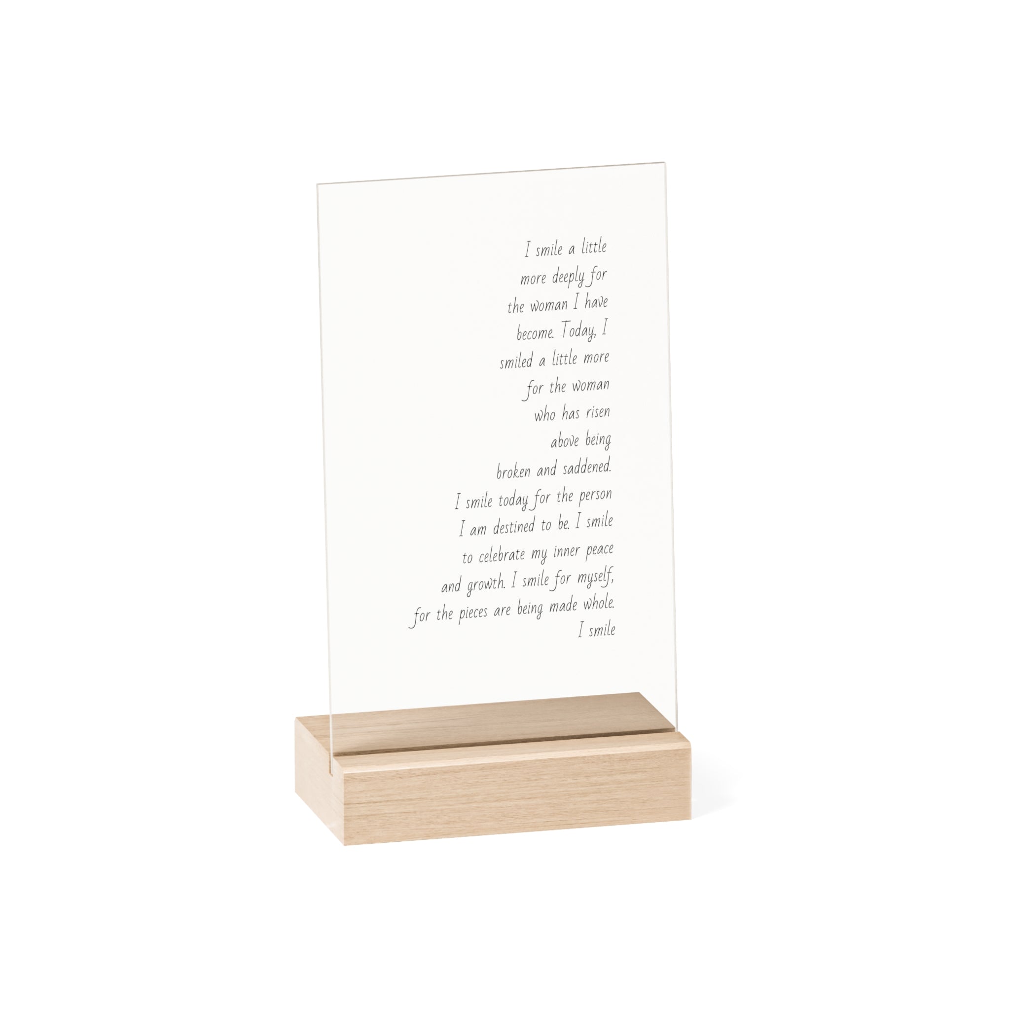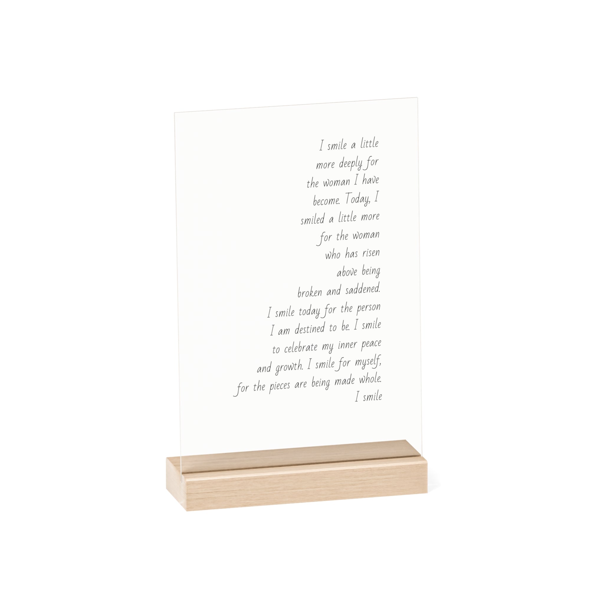 Elevate your space with these acrylic signs featuring vibrant prints and daily affirmation reminders. The sturdy wooden stand keeps the 3mm thick acrylic glass in place, making it perfect for any desk or shelf. Ideal for those seeking motivation and positivity in their daily lives, these signs are relevant for birthdays, graduations, or as a thoughtful gift for a loved one.